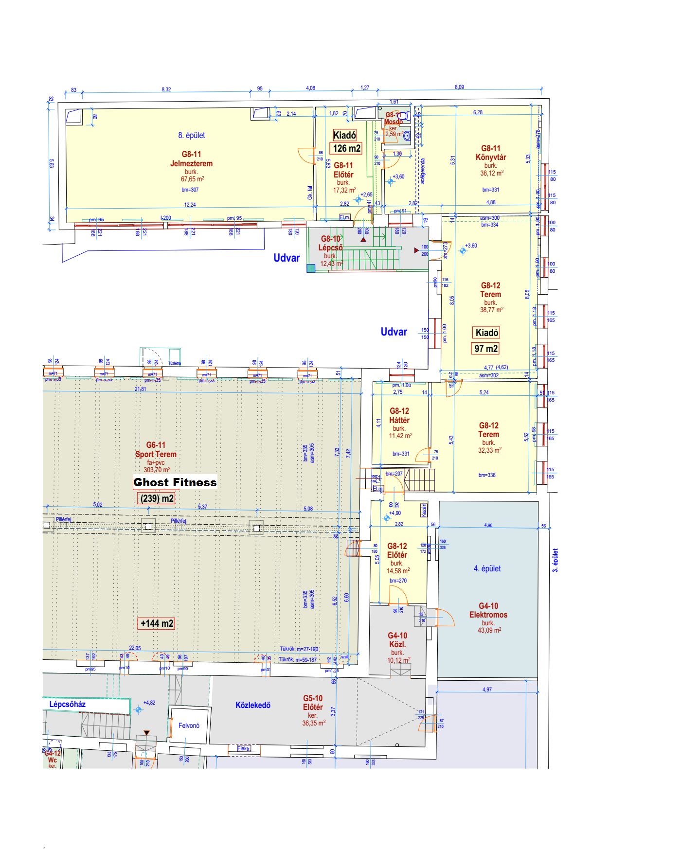 Világos 32-38-68 m2-es nagyméretű termek, előterekkel, saját vizesblokkal.